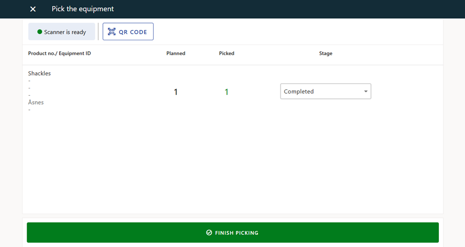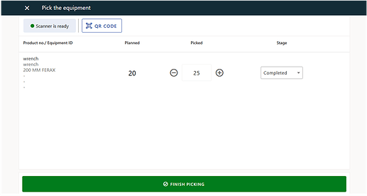 - As soon as the picked quantity reaches the planned quantity, the request stage updates automatically to indicate that picking is complete.